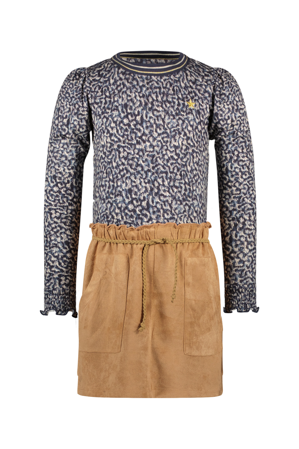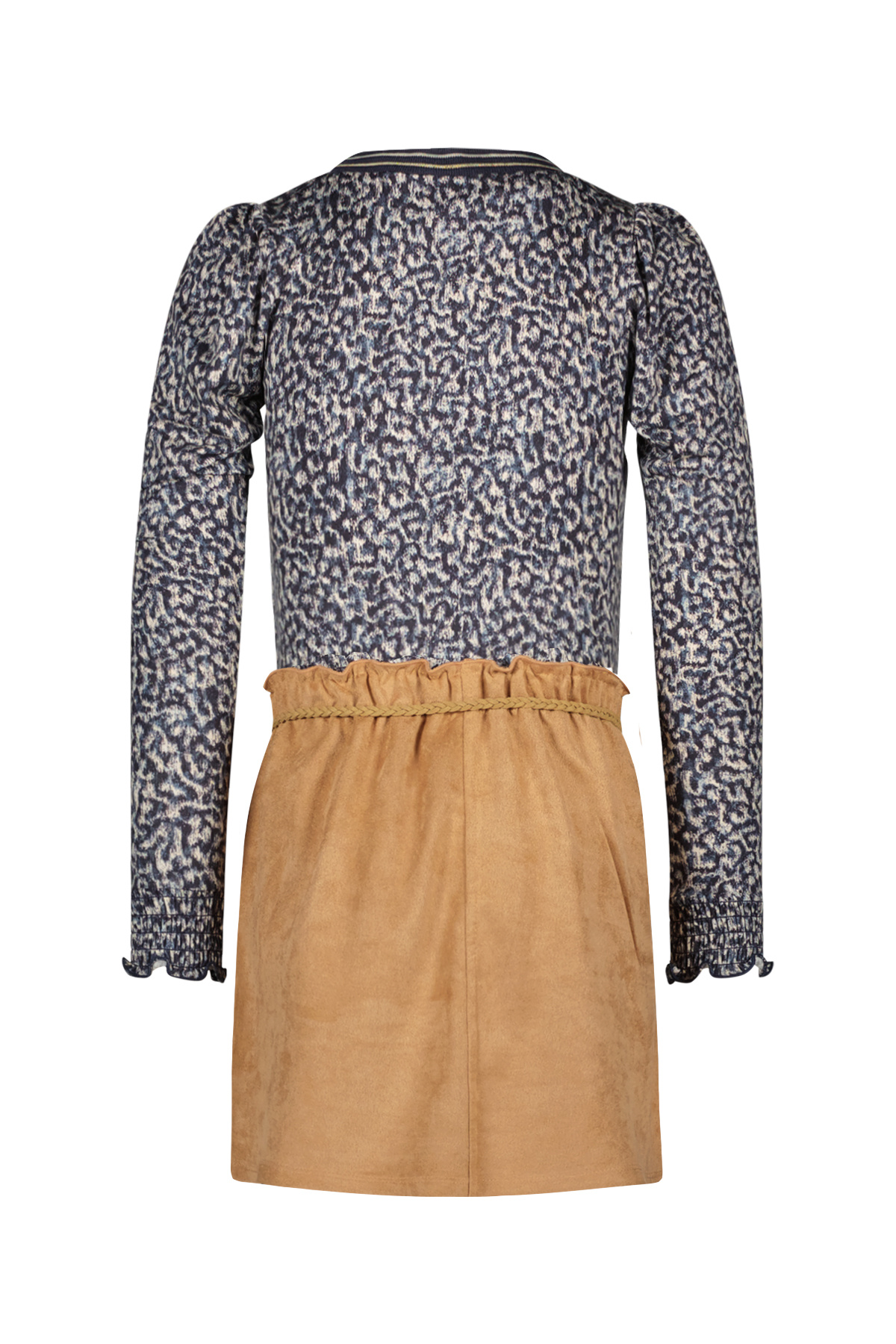 Maartje 'Flo girls dress with viscose top, fancy neck rib and PU leather skirt